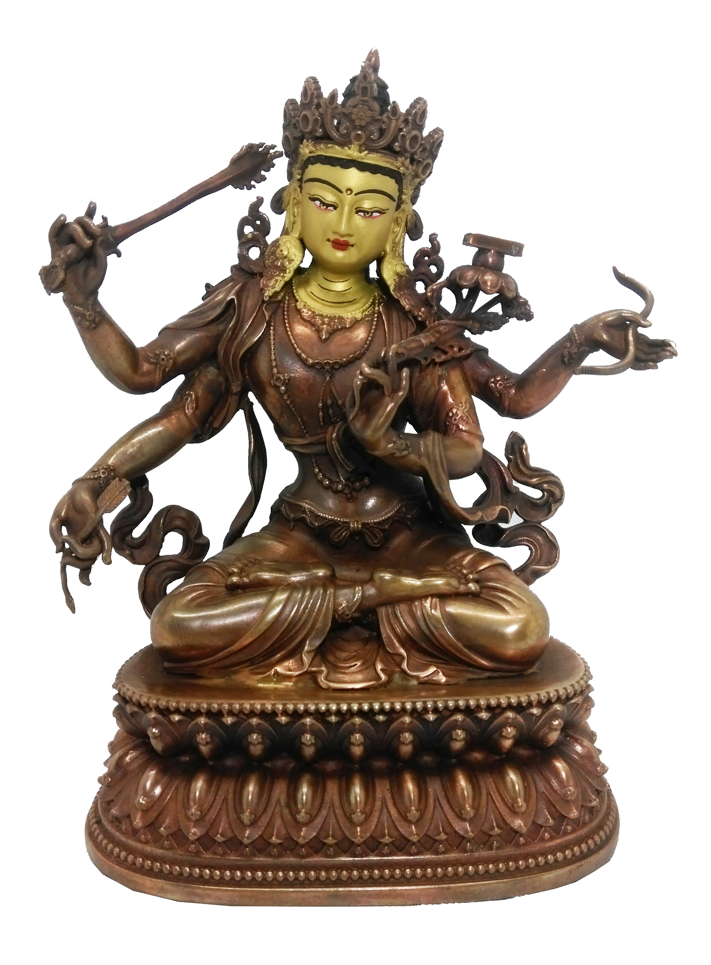 - **密宗實踐的核心**:在金剛乘(Vajrayana)中,文殊菩薩是重要的本尊,相關經典如《文殊根本續》(Mañjuśrīmūlakalpa)和《文殊師利名誦》(Mañjuśrīnāmasamgīti)被廣泛修持。他的伴侶有時被視為 Saraswati(辯才天女),強調智慧與語言的連結。