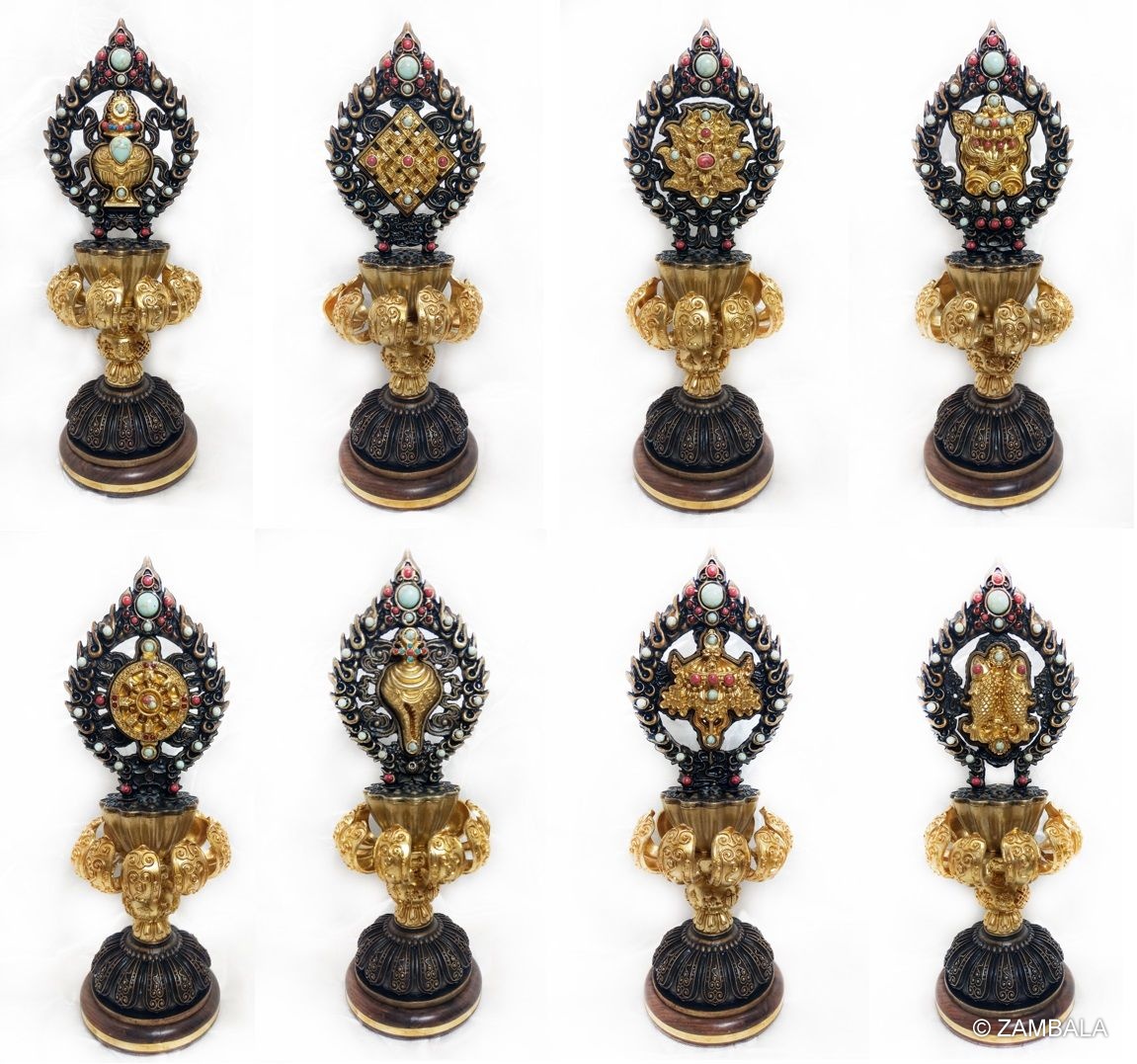 藏傳佛教的「八吉祥」是一組代表幸運與吉祥的符號。這些符號在佛教藝術和儀式中非常普遍。以下是八吉祥符號及其含義和由來的詳細說明: