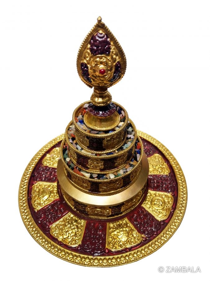 曼達盤主要是藏傳金剛乘密法之供養法器,用以快速聚集成佛資糧道,增長世間福德智慧資糧。一般通常固定供奉在壇城上,在法會時或修四加行時,均可以修供曼達供養法。曼達盤內通常裝置七珍八寶,各種珠寶珍寶或米用以上供上師、諸佛、菩薩、本尊 護法 空行母及其眷屬。以此供養之功德,快速累聚資糧福報俱足讓修法過程順利無障礙,回向法界眾生悉蒙諸佛菩薩,慈悲護唸攝受加持灌頂,同得功德利樂,業障消除、福慧增長,是一般修密法者常用的法器。