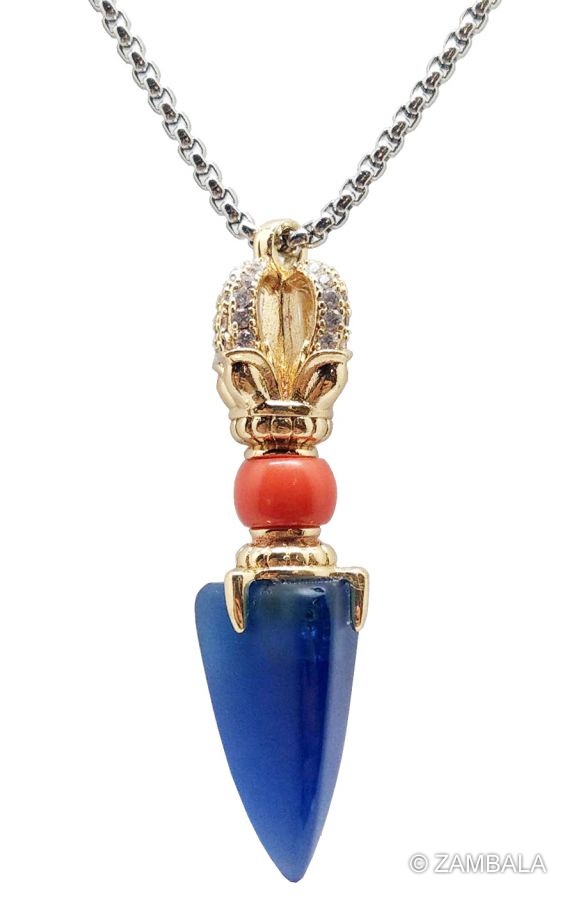 材質 : 鑲碎鑽鍍金琉璃金鋼橛(普巴杵)藍色, 及合成珊瑚