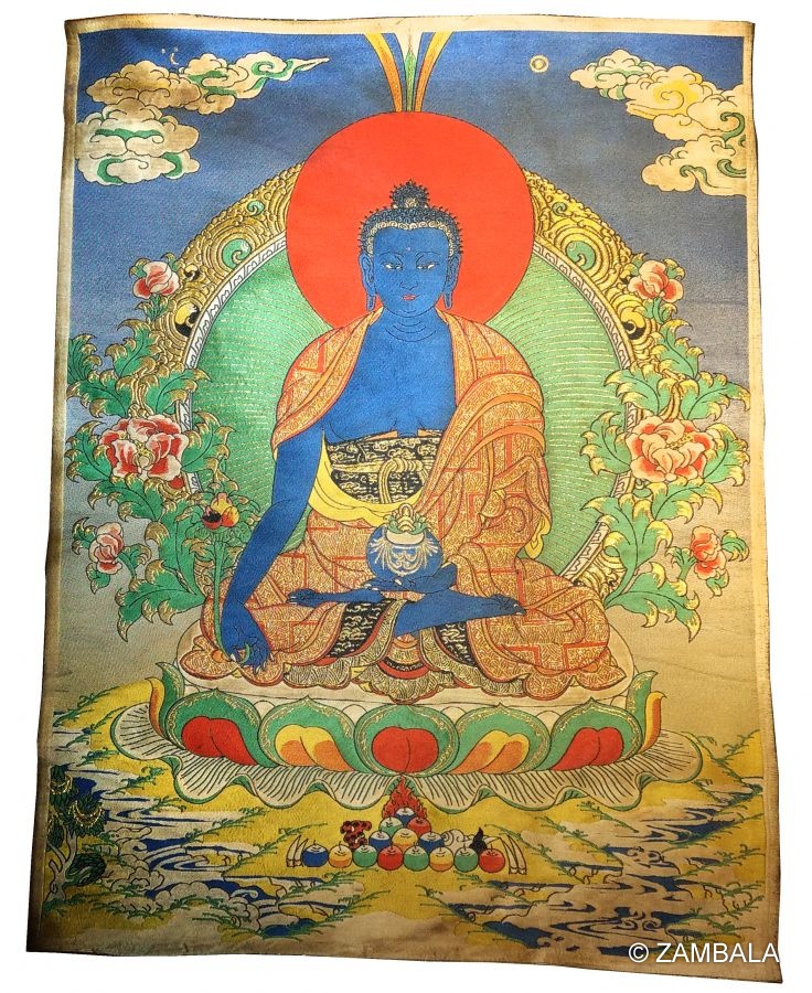 藥師佛錦緞刺繡唐卡