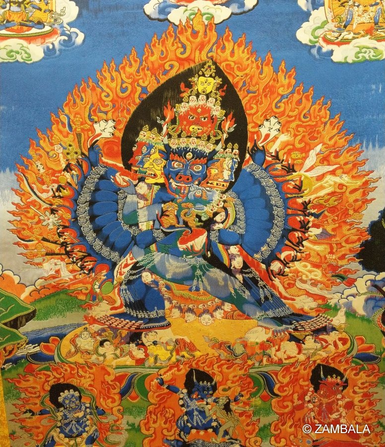 - 在藏地,他的形象與修法融入了當地的文化元素,如水牛頭可能與藏地對動物的崇拜有關。他的修法也與藏傳佛教的護法神信仰結合,成為對抗惡靈與災厄的重要本尊。