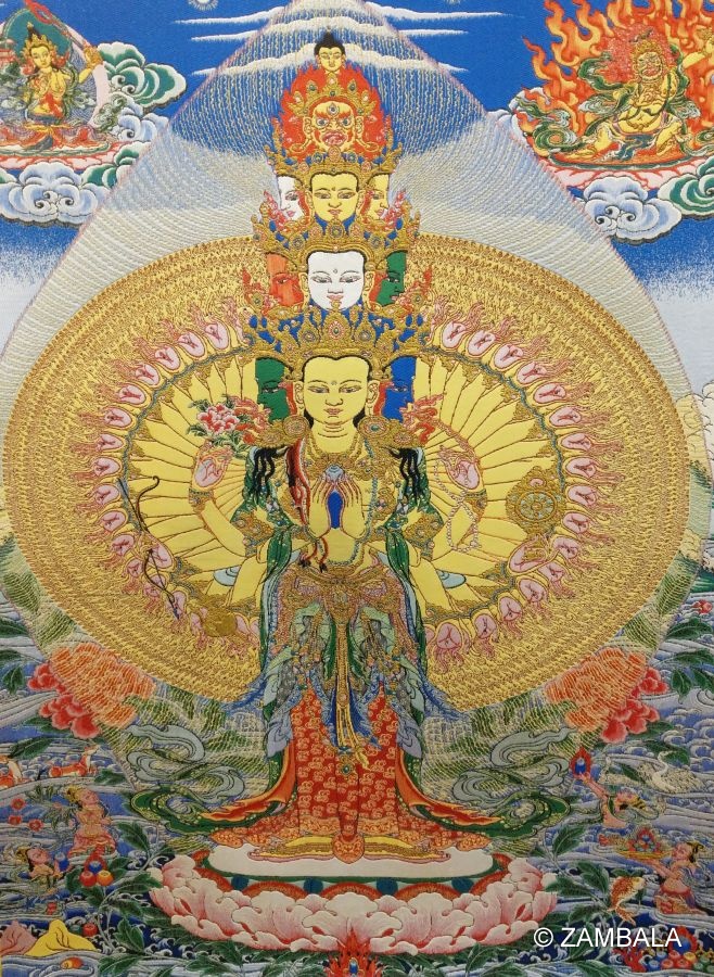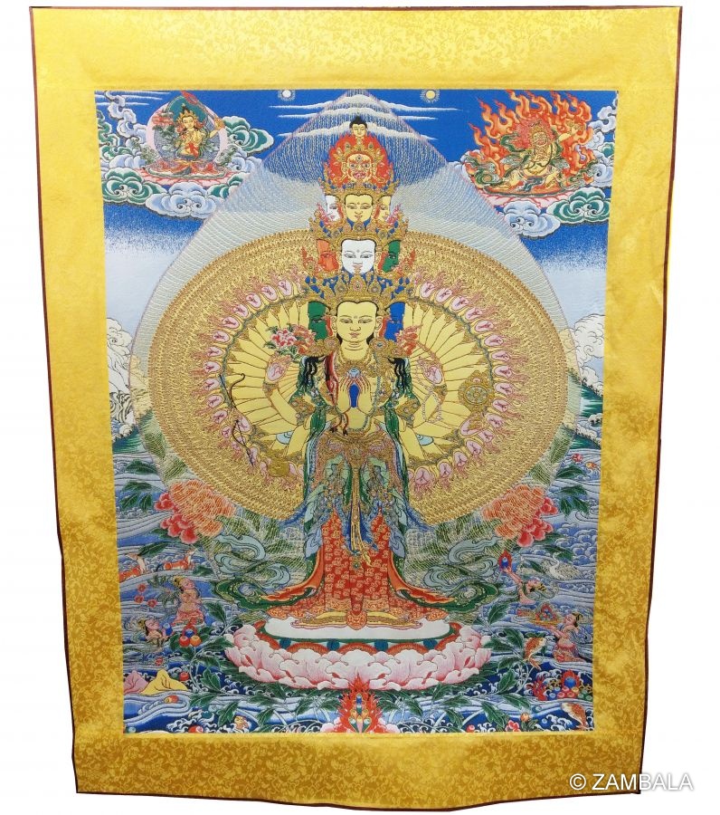 | 千手觀音,錦緞刺繡,布框,唐卡 |