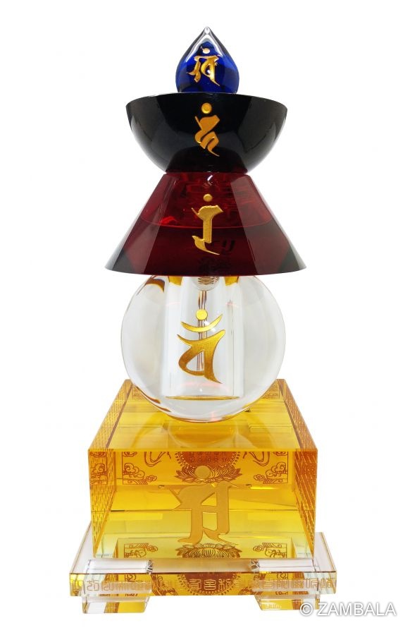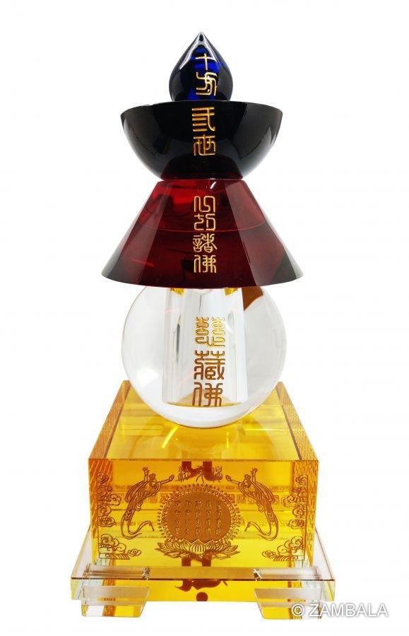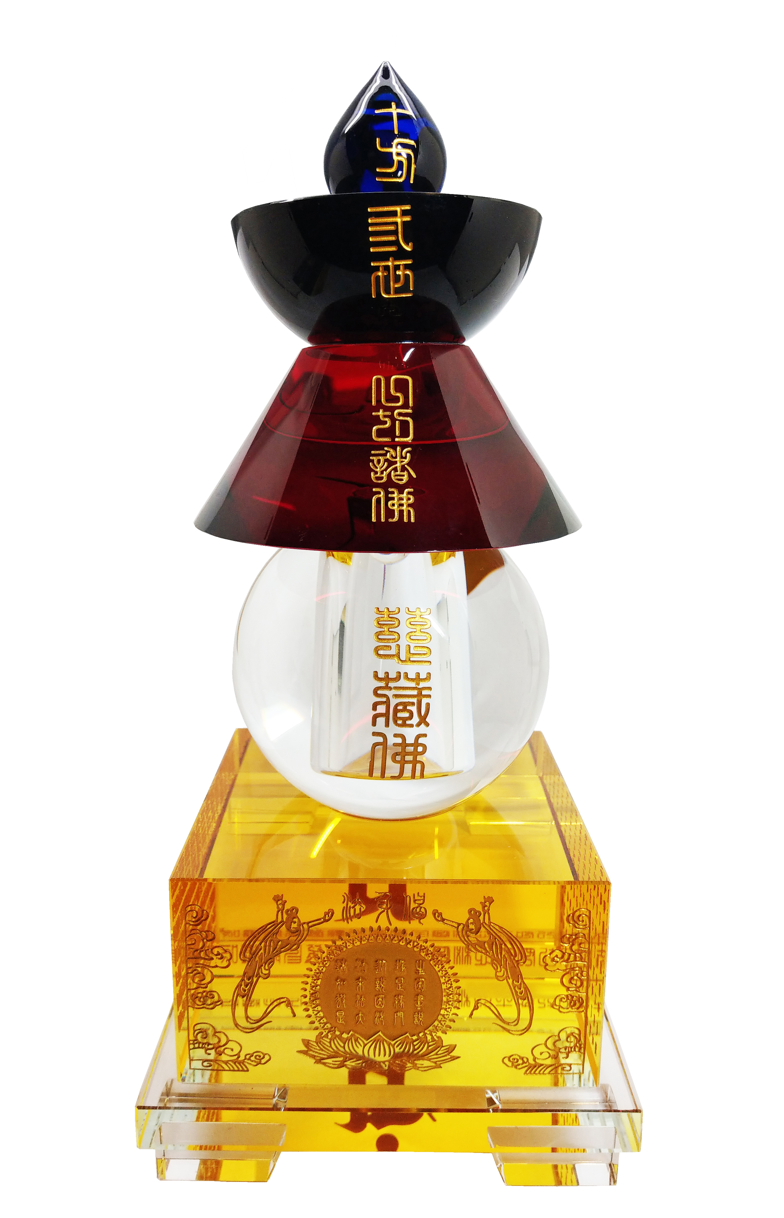 五輪塔的由來則與佛教密宗有關,源自印度和西藏的五輪思想,後傳入日本和中國。五輪塔最早見於日本平安時代(9世紀),受密教影響,塔形設計為五層,象徵宇宙五大元素(地、水、火、風、空),並常與寶篋印陀羅尼結合使用。在中國和台灣,這類塔常以水晶或壓克力製作,彩色設計強化五輪象徵。水晶材質的應用可能源自現代工藝,強調光透與純淨,象徵佛法的清淨無垢。據佛教傳統,建塔安置陀羅尼可使塔變為七寶所成,受諸天護持。