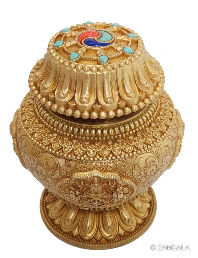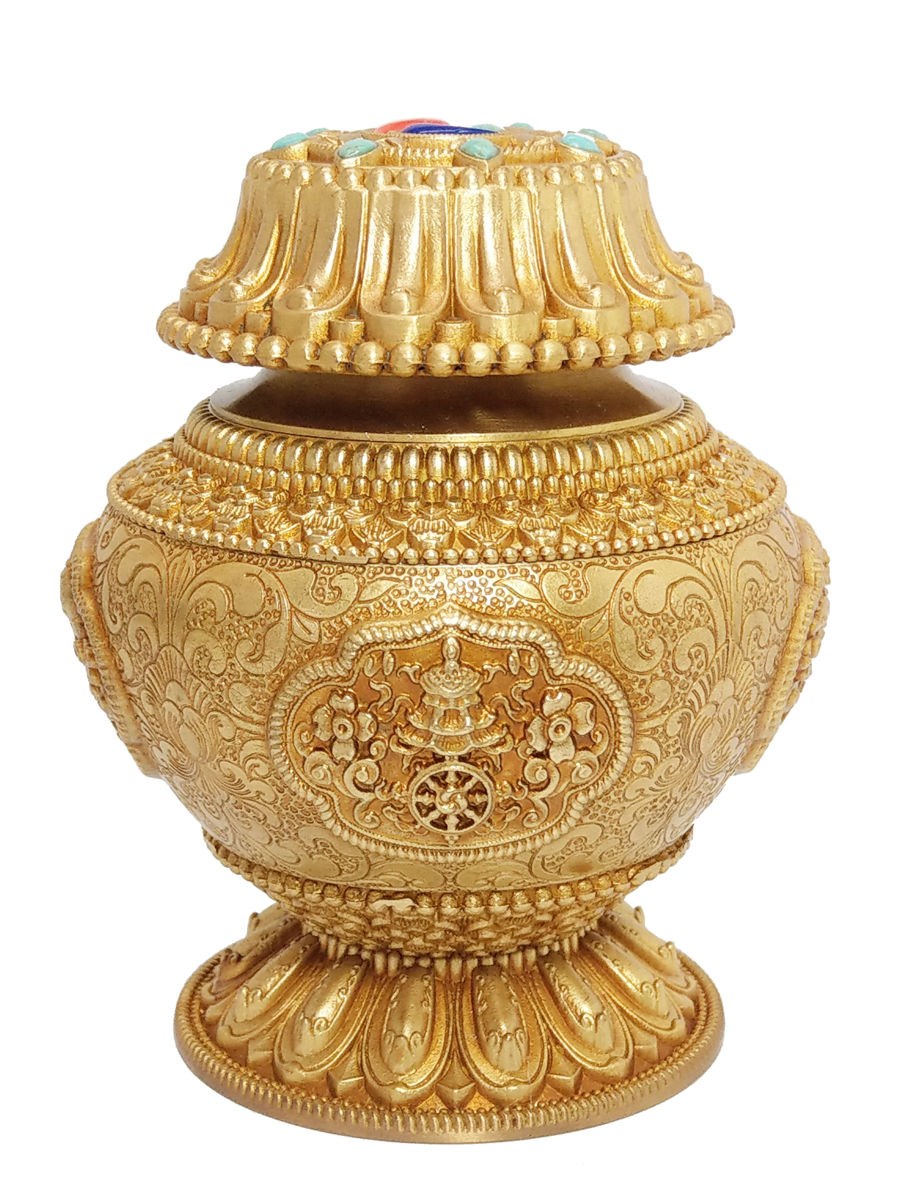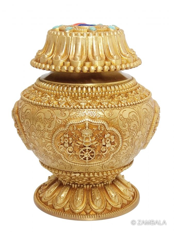 純銅鑲寶石精雕寶瓶