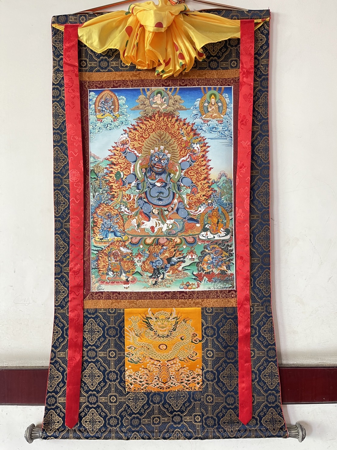 "六臂瑪哈嘎拉"布框印刷唐卡