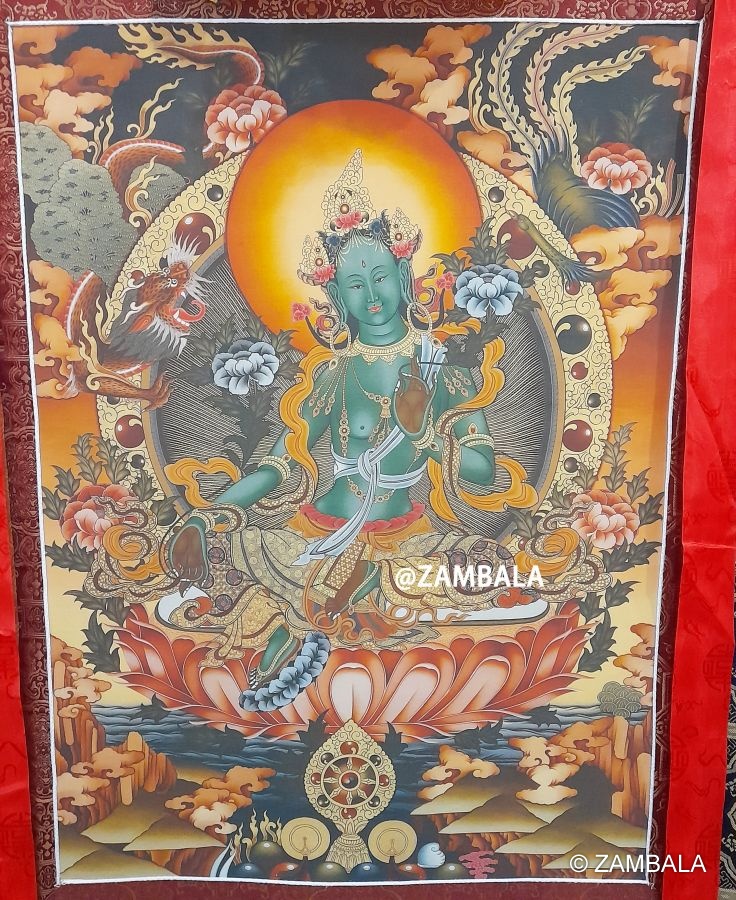 "綠度母"布框印刷唐卡