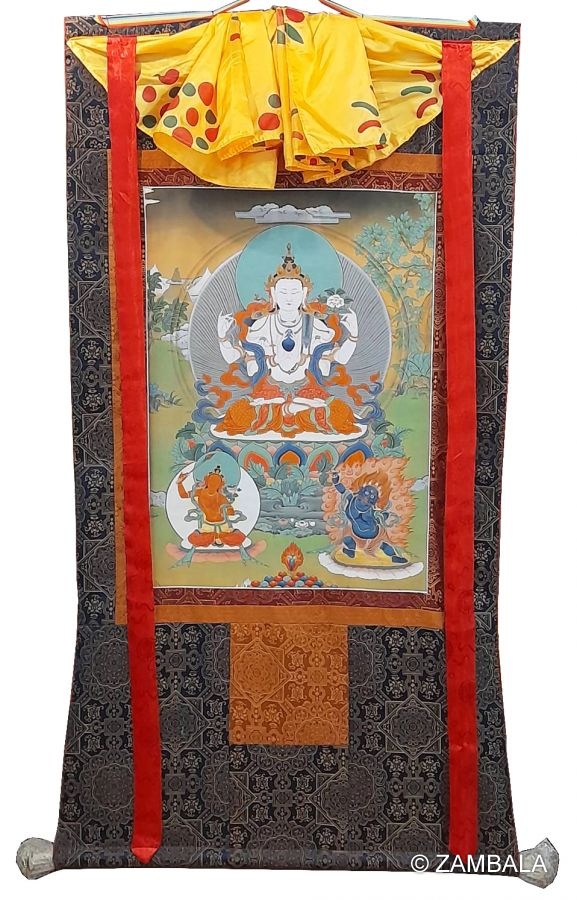 "四臂觀音菩薩"布框印刷唐卡