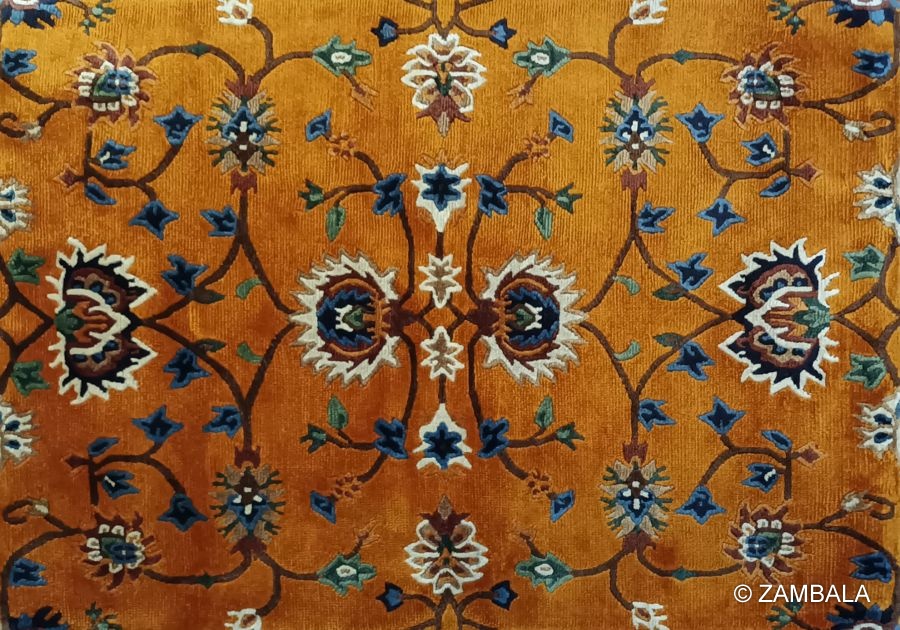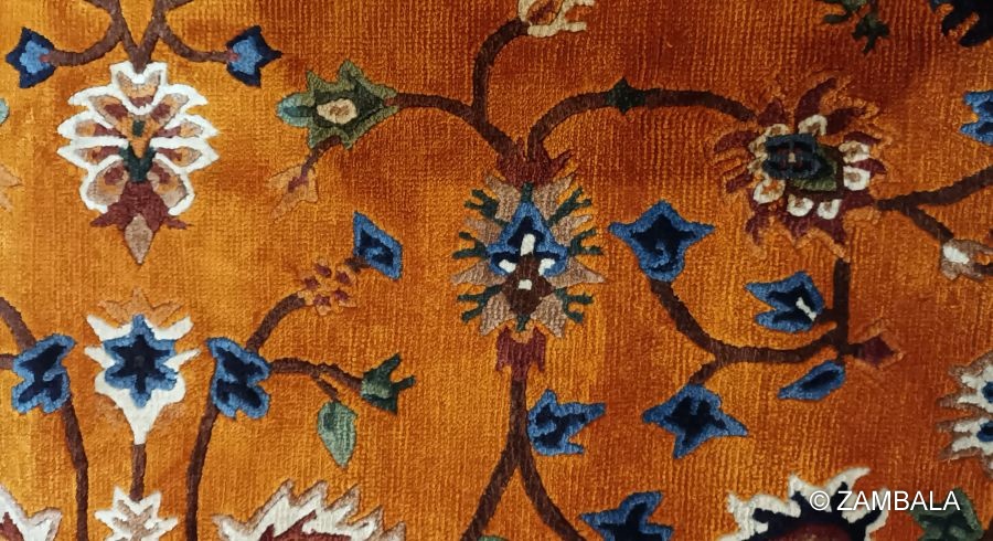 - **真絲**:真絲(蠶絲)因其光澤細膩、質地輕盈,常被用於織造地毯中的精細圖案或細節部分,提升地毯的奢華感和視覺效果。真絲的染色效果鮮明,能呈現細膩的色彩變化,但成本較高。