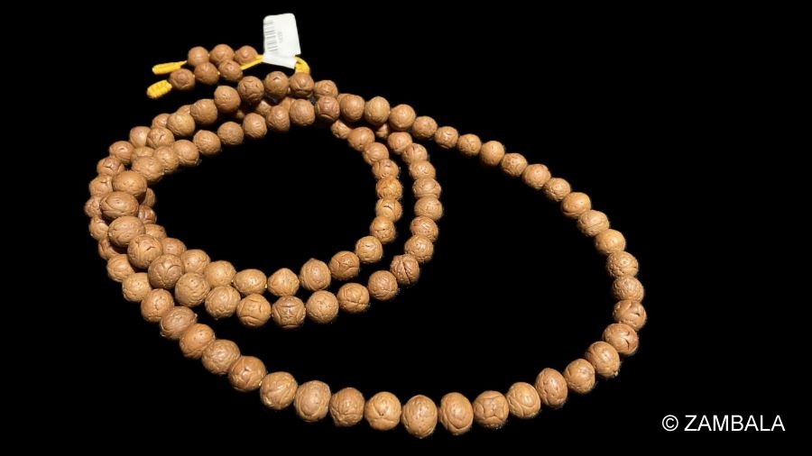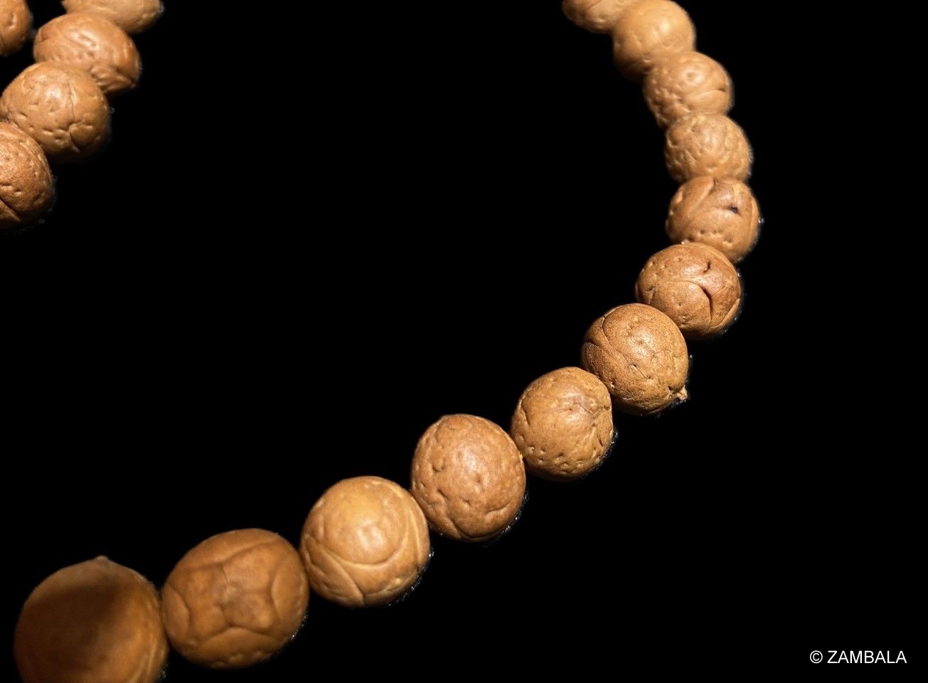 菩提,是梵語bodhi音譯,是覺悟、智慧、知識、道路的意思,廣義講是斷絕世間煩惱而成就涅盤的智慧。 因佛祖釋迦牟尼在菩提樹悉道,菩提即為覺悟,成就佛果之意。 據佛經記載,用菩提子念佛,可獲無量倍功德,因此,菩提子成為最廣泛使用的法器之一無論顯密都是如此。 菩提樹者,即畢缽羅之樹也。 昔佛在世,高數百尺,屢經殘伐,尤高四、五丈。 佛坐其下成等正覺,因而謂之菩提樹焉。 而以菩提來命名的佛珠質料,總計有三十多個品種。 這其中有依產地來命名的,如天台菩提、豚菩提等;有依紋理來命名的,如星月菩提、鳳眼菩提等。 攜帶一串菩提佛珠,是會給人增福無量的。 正因為菩提子有如此深遠的意義,因此通常將許多佛珠皆命名為菩提. |