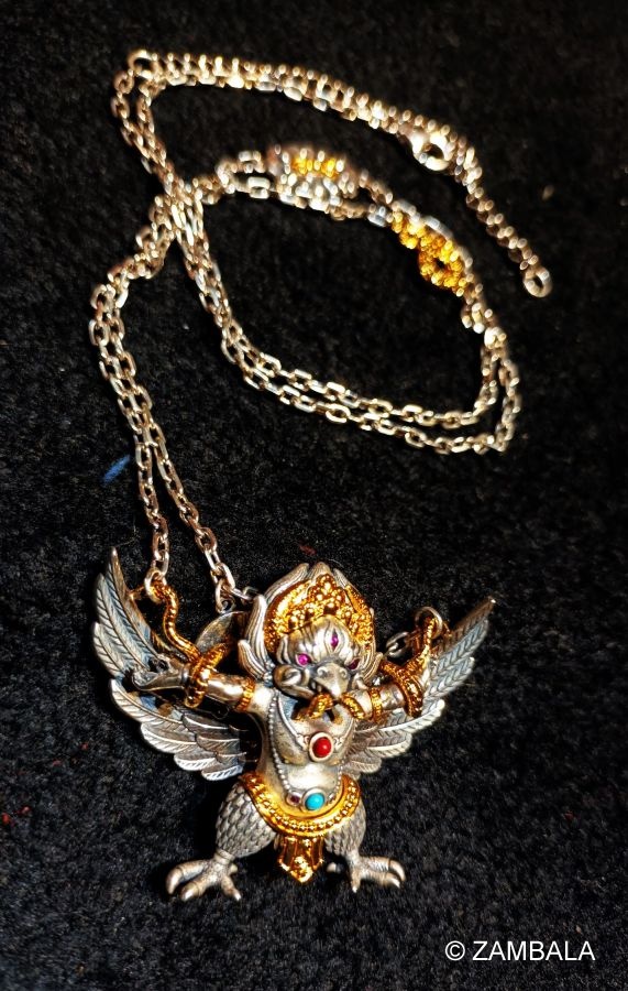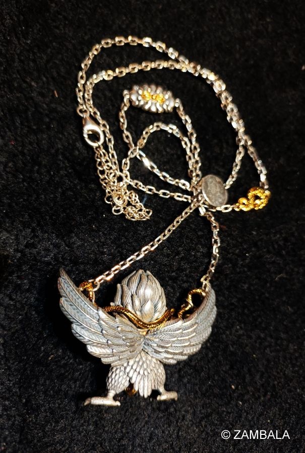 項鍊墜飾鵬金翅鳥又叫做“瓊鳥”,漢語叫做“金翅膀鳥”。又叫迦樓羅,梵語garud!a,巴利語garul!a。又作加樓羅鳥、迦留羅鳥、伽婁羅鳥、揭路荼鳥。意譯作食吐悲苦聲。或作蘇缽剌尼(梵suparn!i ),即金翅鳥、妙翅鳥。
