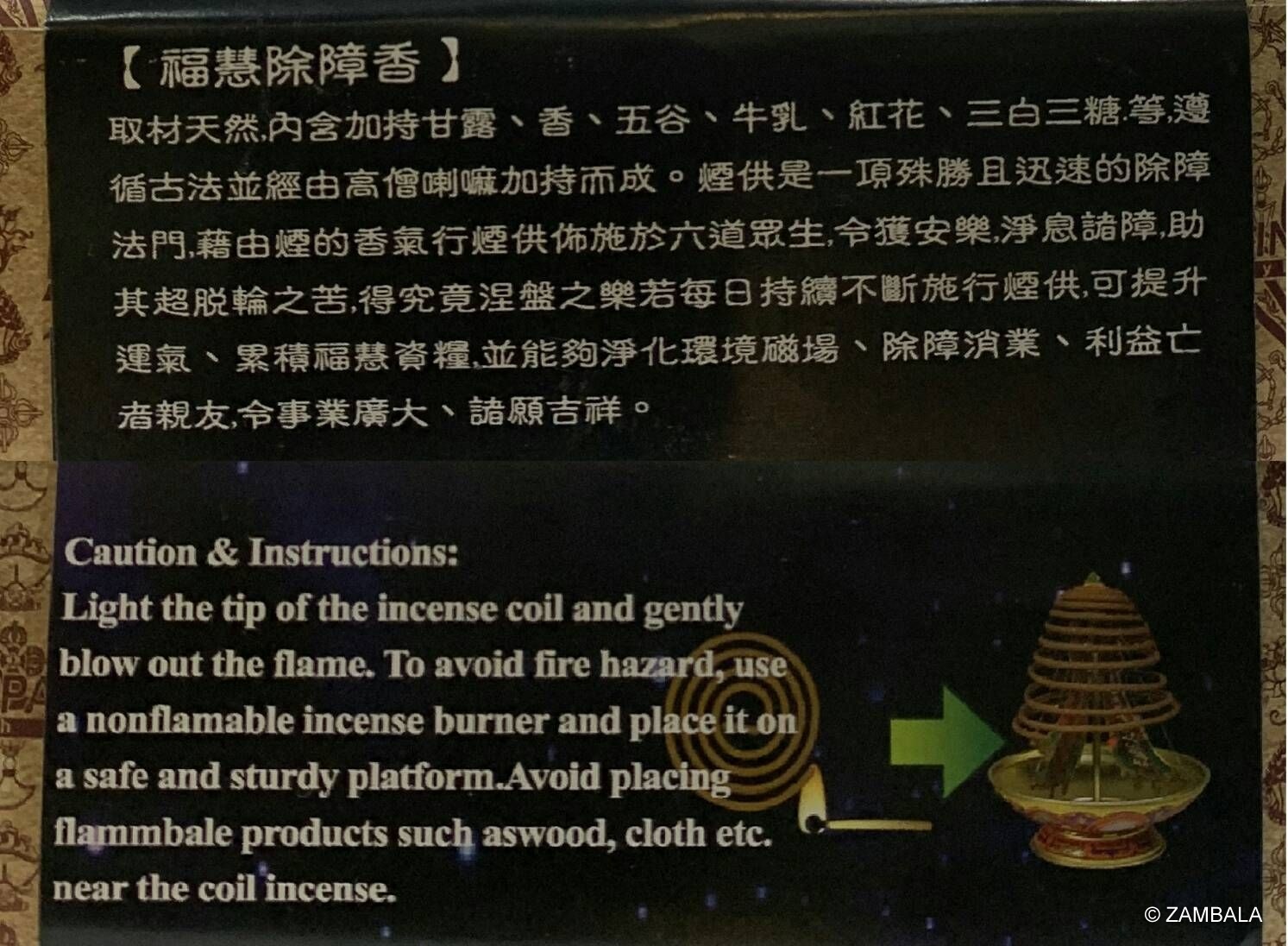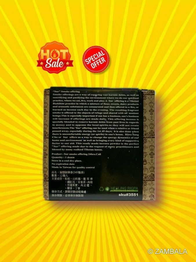 - **經典依據**:其配方源自蓮師傳授的《藍神水淨除穢薰煙經》(或稱《除穢薰煙經》),這是一卷佛教經藏,強調薰煙能斷除上方兇神、下方惡龍、中界山妖水怪等障礙。後經顯密僧伽法會加持,成為珍貴神品,廣傳於藏傳佛教的寧瑪派與其他宗派。