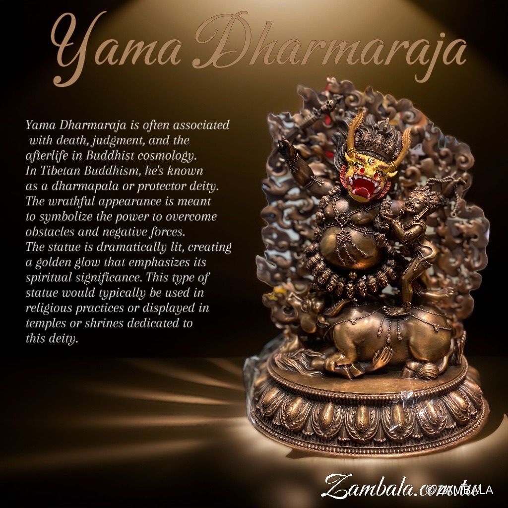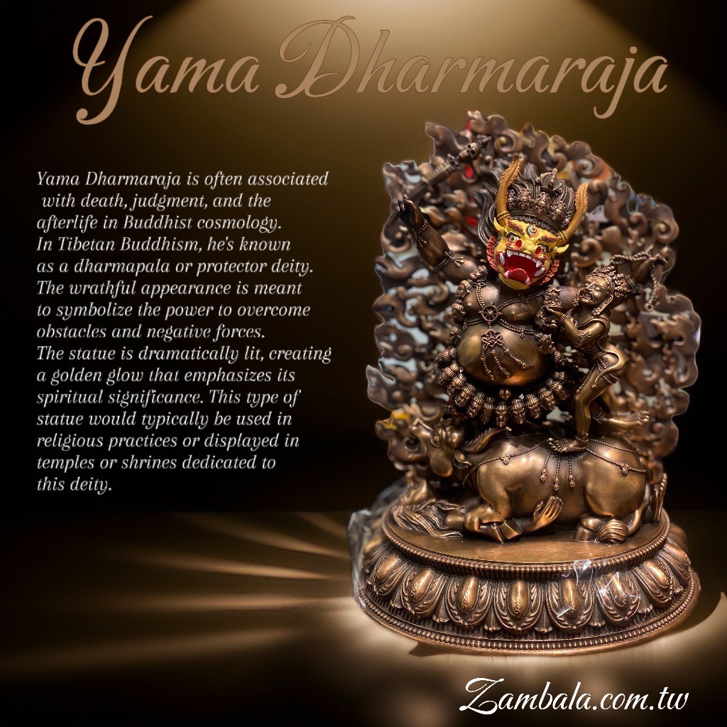 外閻羅(Yama Dharmaraja)是藏傳佛教中的一位重要護法神,被認為是閻羅王的化身之一。他負責維持眾生的善惡業報,並在死亡時審判靈魂。外閻羅的形象通常非常威嚴,手持法器,坐騎水牛,象徵著正義和力量。