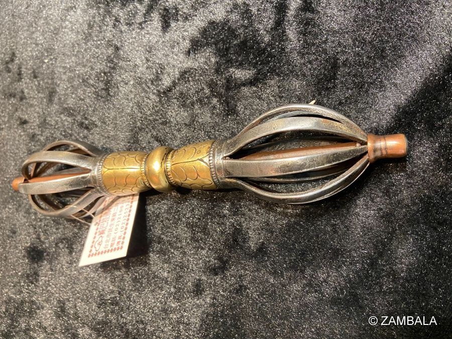 九股杵的形制與概念源自印度的金剛乘傳統,在佛教向西藏傳播的過程中得以保存和發展。它的形狀類似於金剛杵,但在末端分為九股,象徵著強大的保護力與驅散障礙的能力。在印度與西藏的經典記載中,九股杵被視為與智慧、慈悲相關的象徵物,同時也是驅邪降魔的重要工具。