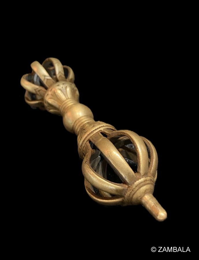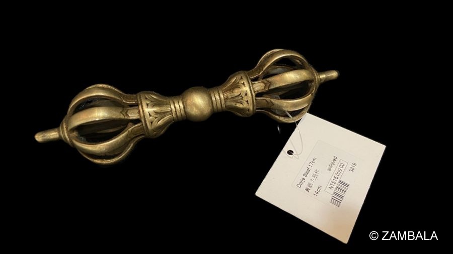 九股杵的形制與概念源自印度的金剛乘傳統,在佛教向西藏傳播的過程中得以保存和發展。它的形狀類似於金剛杵,但在末端分為九股,象徵著強大的保護力與驅散障礙的能力。在印度與西藏的經典記載中,九股杵被視為與智慧、慈悲相關的象徵物,同時也是驅邪降魔的重要工具。