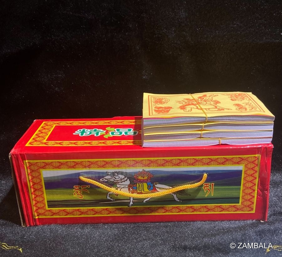 風馬紙的概念源自藏族傳統的祈福習俗,與經幡(風馬旗)有相似的作用。風馬在藏傳佛教中象徵運勢與能量,代表風的力量能夠承載祈願,將祝福傳遞至天地之間。這一習俗可以追溯至象雄文化時期,並在藏傳佛教中得到了進一步發展。