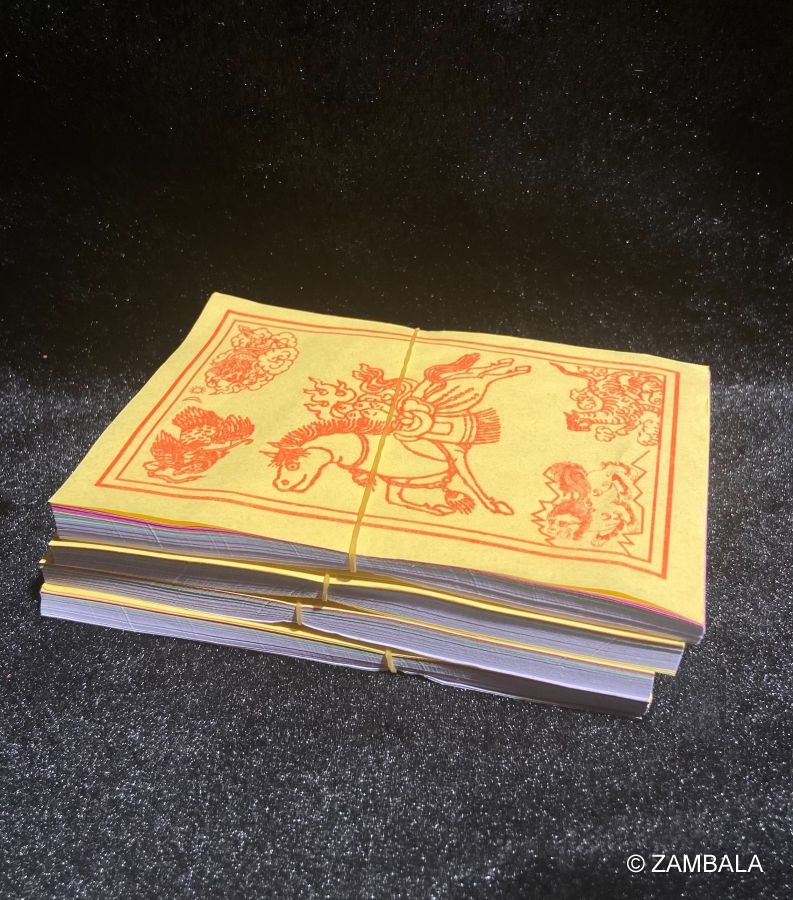 - **供奉與懸掛**:風馬紙可以張貼於寺院、家宅或山口,以祈求平安與順利。