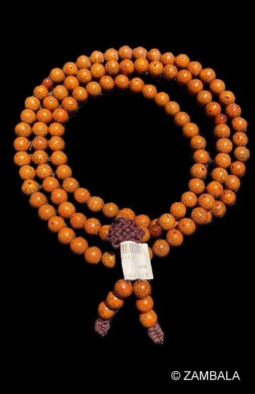 星月菩提佛珠是藏傳佛教中常見的念珠之一,其名稱源於其獨特的外觀——珠子表面佈滿細密的棕黑色斑點,中央有一個較大的胚芽孔,形似繁星拱月,因此得名「星月菩提」。