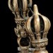 在《梨俱吠陀》(Rigveda)中,天帝釋手持金剛杵,對抗惡龍「Vritra」(遮那),這條龍囚禁了宇宙河流,導致大地乾旱、眾生饑渴。釋以雷電之力揮杵擊碎Vritra的身軀,釋放河流,帶來雨水與豐饒,象徵戰勝混亂與死亡。 佛教借此轉化:Vritra 比喻內在「無明惡龍」,金剛杵則為智慧武器,用以解放眾生於輪迴之苦。九股設計強化此意,代表九類教法全面降伏「死主」。