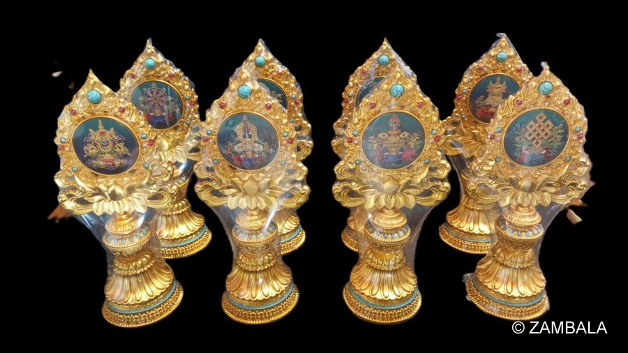 7. **勝幢**(རྒྱལ་མཚན་):象徵勝利與成就,代表修行者能戰勝煩惱,達到究竟的智慧。