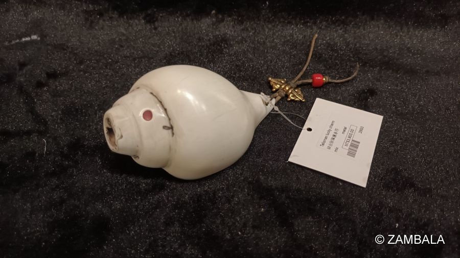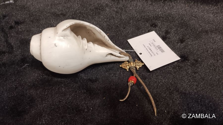 法螺在藏傳佛教中是一種重要的法器,象徵佛法的傳播與清淨的法音。它通常由右旋海螺製成,因為右旋被認為是吉祥的象徵,代表佛法的圓滿與正向流轉。