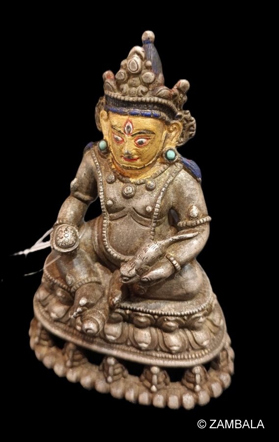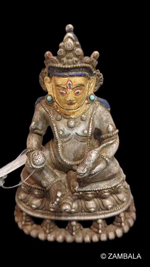 在藏傳佛教中,**黃財神**(藏語:གཡང་ཆེན་ནོར་བཟང་,梵語:Jambhala)是**五姓財神**之一,象徵**財富、福德與智慧**。他是財神之首,負責賜予修行者物質資源,使其能安心修行,不受貧困所困擾。