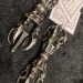 相傳五股杵在古印度曾被佛教護法神用來驅魔降妖,保護修行者免受外界干擾。它的造型既象徵宇宙中心的神聖秩序,又象徵佛教徒的修行目標——智慧與慈悲的完美結合。