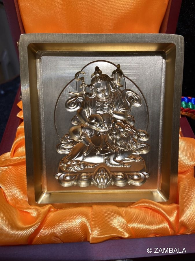 雖然佛教強調去除貪慾,鼓勵簡樸生活,但藏傳佛教認可世間資糧對修行與弘法的重要性。財寶天王象徵財富的正當使用,教導信徒以慈悲布施(Dāna)利他,不囤積財富、不生慳吝心,並以供養三寶(佛、法、僧)積累功德。他的教法提醒修行者,財富應服務於菩提心(Bodhisattvacitta),用於救度眾生,而非滿足個人貪欲。
