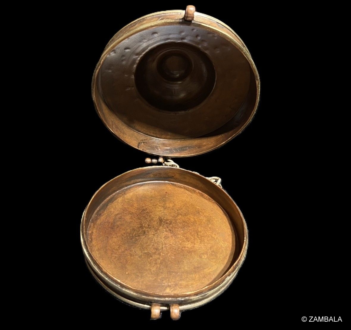 - **小型鈸(丁夏,Tingshag)**:直徑約5-10厘米,成對使用,由銅、青銅或黃銅製成,中央有凸點,兩鈸相擊產生清脆聲音。鈸面常刻有真言(如「唵嘛呢叭咪吽」)或八吉祥符號,繫有布條或皮繩,便於手持。