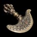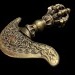 - 九股彎刀杵的造型通常為三棱錐形,頂部或中部有九個彎曲的刀刃或突起,象徵九種力量或九種本尊的加持。其尖端銳利,代表刺破無明與魔障,基部常有金剛杵或蓮花座,象徵穩固與清淨。