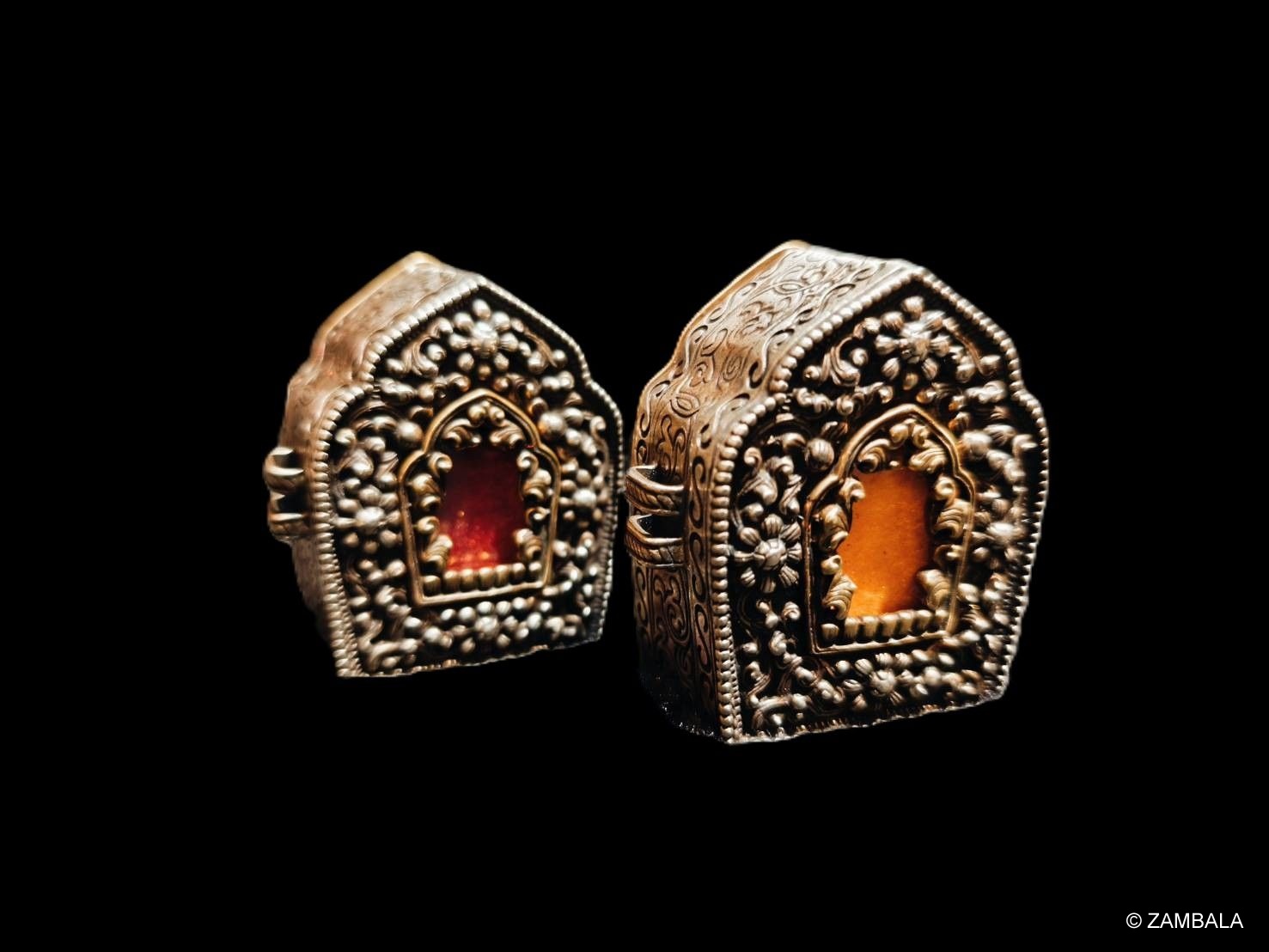 1. **起源與演變**:嘎屋由古代的佛盒演變而來。早期藏族佛教徒將佛像或經文置於小型盒子中,隨身攜帶以供奉與保護。隨著藏傳佛教密宗的發展,嘎屋逐漸融入更多密教元素,如咒輪、聖物裝藏等,成為現代常見的護身飾物。