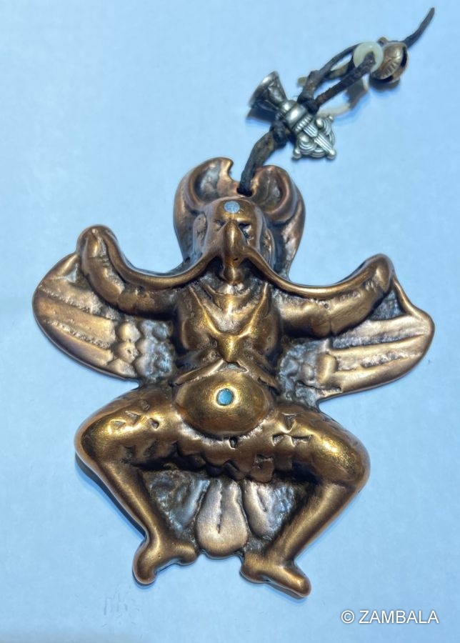 - 在藏傳佛教金剛乘的密續中,大鵬金翅鳥常作為護法神的化身,與金剛手菩薩(Vajrapani)等相關,用於降伏魔障與保護修行者。