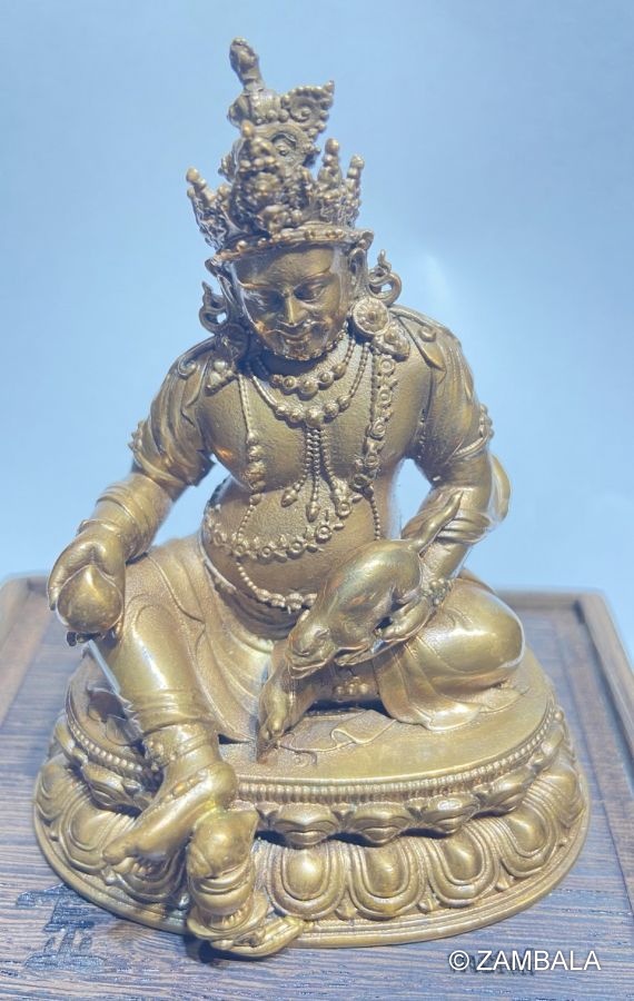 在藏傳佛教中,**黃財神**(藏文:Dzambhala,梵文:Jambhala)是財富、福德與富足的象徵,屬於財神之一,主要被信徒供奉以祈求財富、事業順利及生活富足。他是藏傳佛教中的重要護法神之一,與其他財神如白財神、黑財神、紅財神、綠財神等共同構成財神系統,每位財神有其獨特的象徵意義和功能。