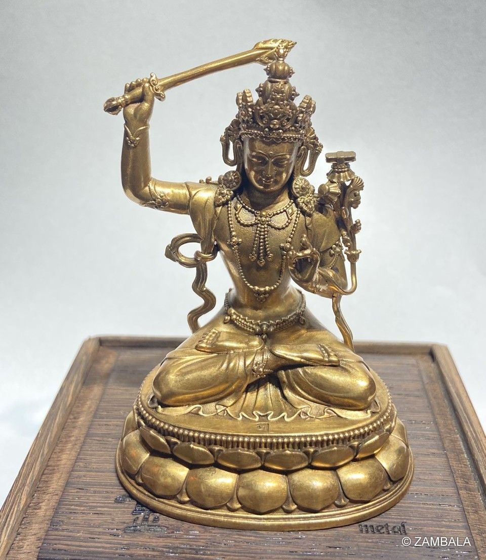 3. **慈悲與行動**:雖然以智慧著稱,文殊菩薩也體現慈悲,通過智慧幫助眾生脫離苦海,與其他菩薩如觀音(慈悲)與金剛手(力量)共同構成藏傳佛教中的重要菩薩形象。