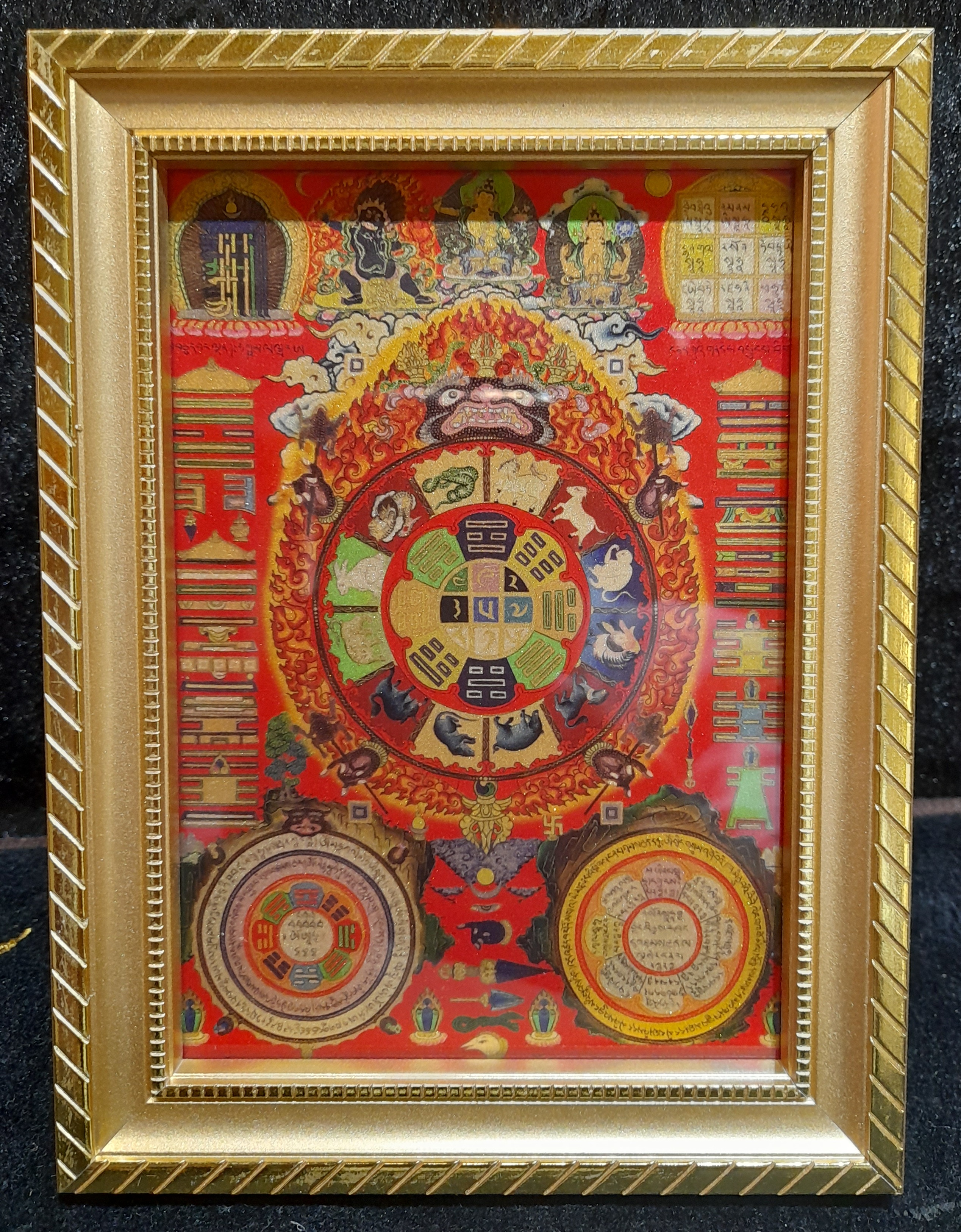 材質 : 鍍金 . 印刷 . 畫框 . ( 九宮八卦 / 時輪金剛 兩種樣式 )
