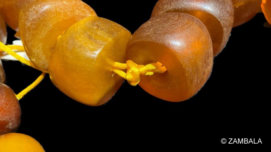 - 老蜜蠟佛珠在藏傳佛教中被視為具有靈性加持的聖物。蜜蠟(琥珀的一種)是由樹脂經數百萬年自然形成的天然材質,藏傳佛教徒認為其蘊含大自然的能量,與佛教「無常」與「輪迴」的哲理相呼應。