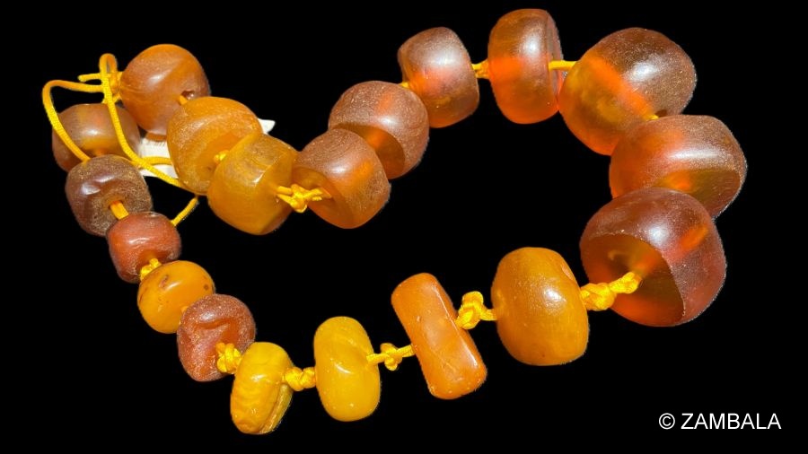 - **蜜蠟的引入**:蜜蠟作為佛珠材質的流行與藏地對天然材質的崇尚有關。藏傳佛教強調與自然和諧共存,蜜蠟的天然屬性使其被視為大地的恩賜,適合用於製作佛珠。早期,蜜蠟多從波羅的海或中亞地區通過貿易進入西藏,成為珍貴的宗教與文化用品。