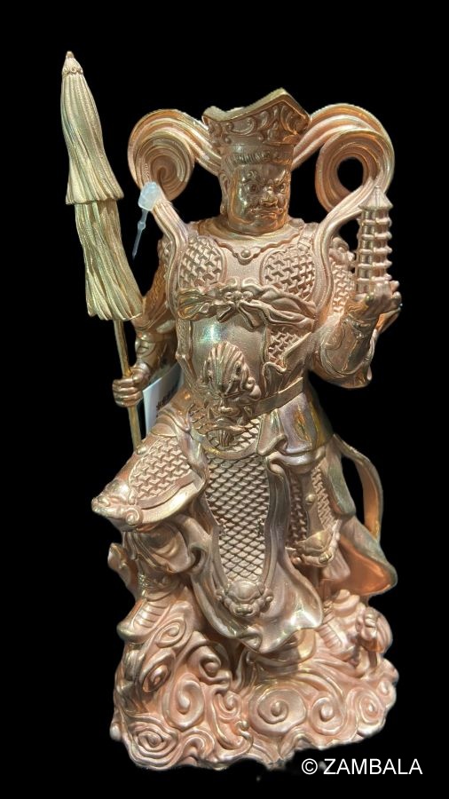 4. **北方多聞天王**(藏語:rNam thos sras,梵語:Vaiśravaṇa):掌管北方,守護夜叉,象徵財富與福報,持寶幢或吐寶鼠,代表賜予財富與保護。