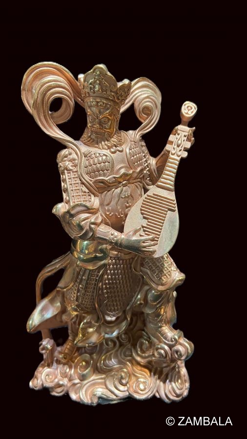 1. **東方持國天王**(藏語:Yul 'khor srung,梵語:Dhṛtarāṣṭra):掌管東方,守護乾達婆(音樂神),象徵保護佛法與和平,持琵琶,代表調和。
