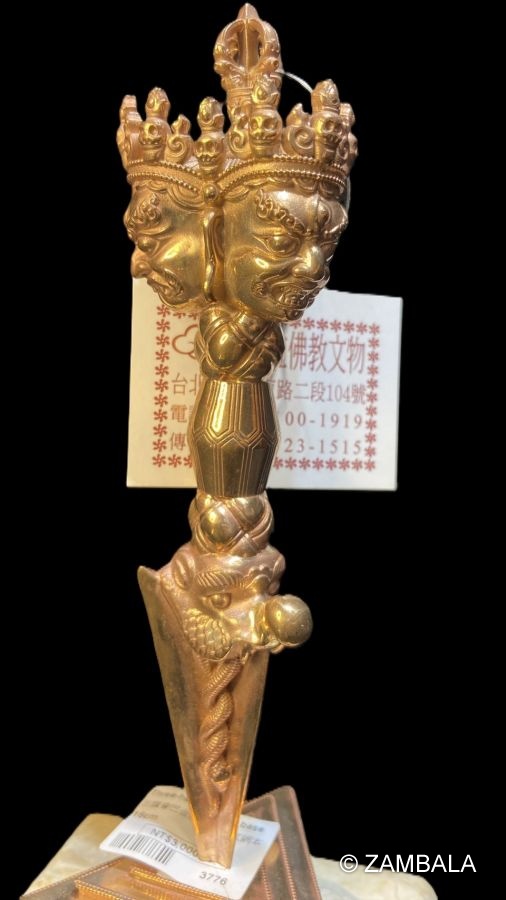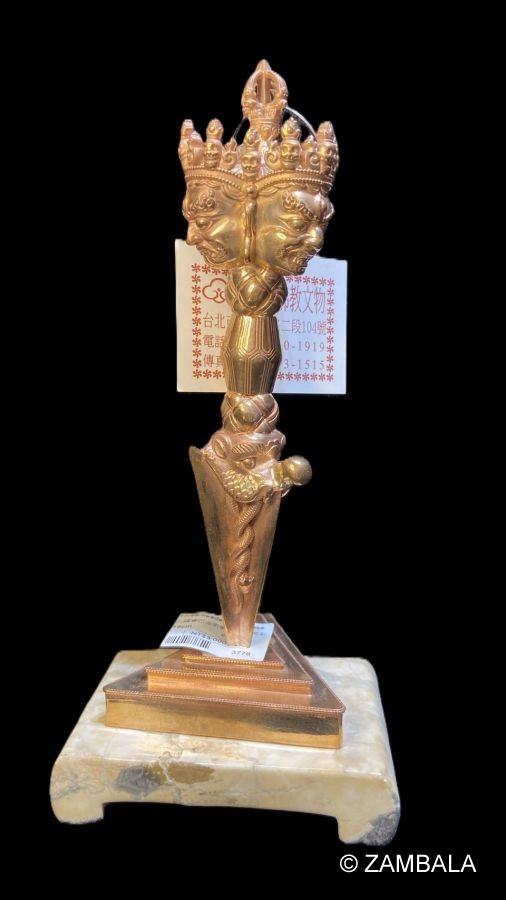材質 : 三頭普巴金剛橛 . 鑄造 . 紅銅 ( 不含底座 )
