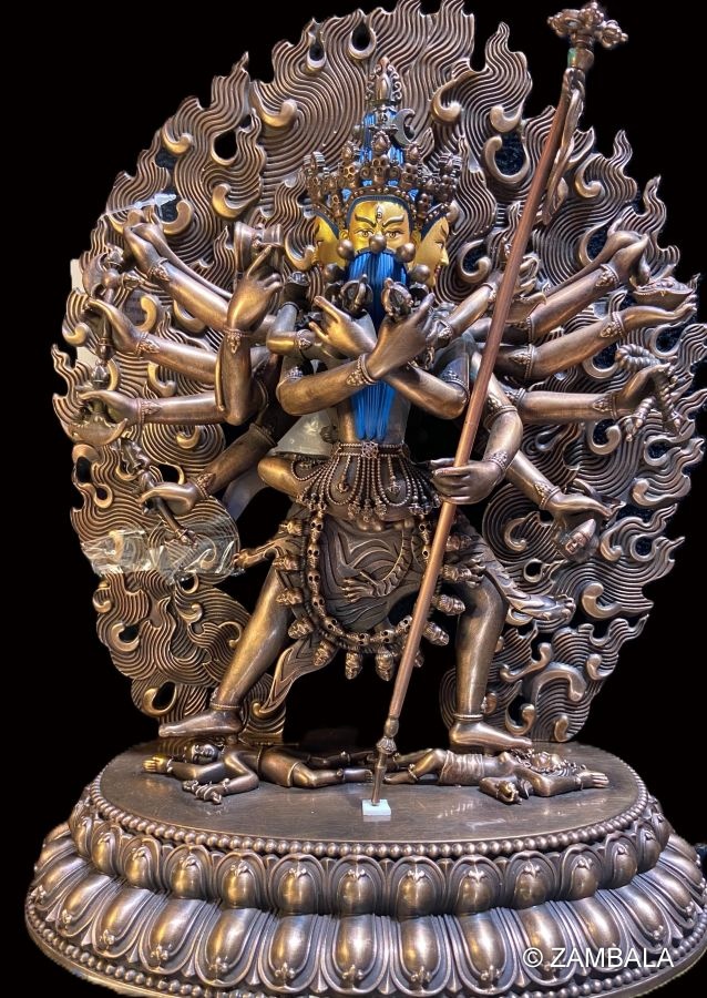 4. **文化影響**:勝樂金剛的形象和修法不僅影響藏傳佛教的宗教實踐,也深刻影響了藏族藝術、唐卡繪畫、雕塑以及寺院建築的設計。他的曼陀羅(Mandala)被廣泛用於密宗灌頂和觀想修行,是藏傳佛教儀軌中不可或缺的一部分。
