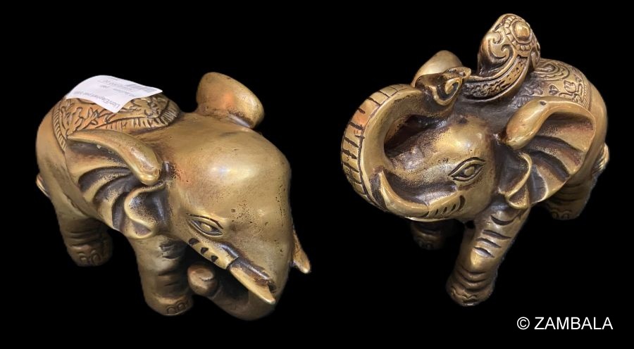 - 在藏傳佛教的「八吉祥」(Ashtamangala)符號中,大象並非直接的八種聖物之一,但其形象常與吉祥天(Lakshmi)或財寶天王(Vaiśravaṇa)等財富與福報相關的神祇連繫在一起,象徵豐饒與繁榮。