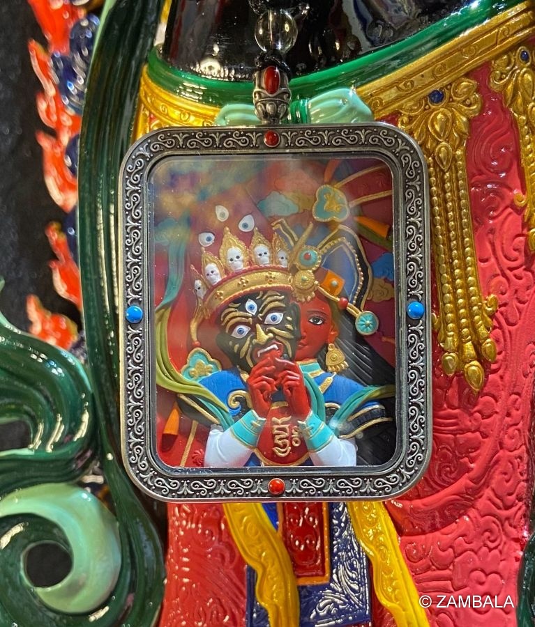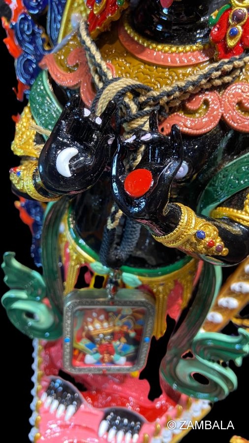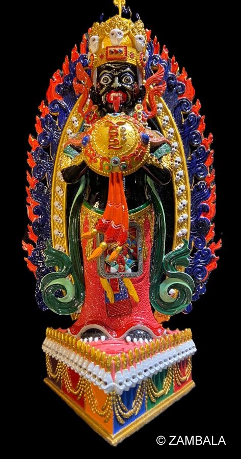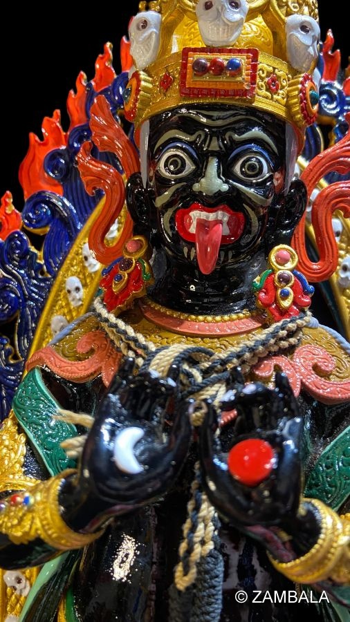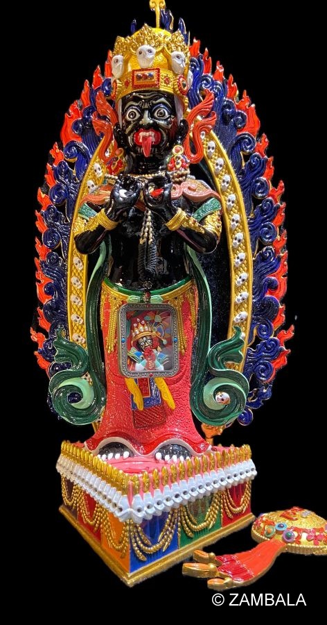 扎基拉姆為黑臉、吐舌,頭戴骷髏冠、長出一雙雞足的恐怖形象,類似於印度教的時母。