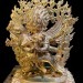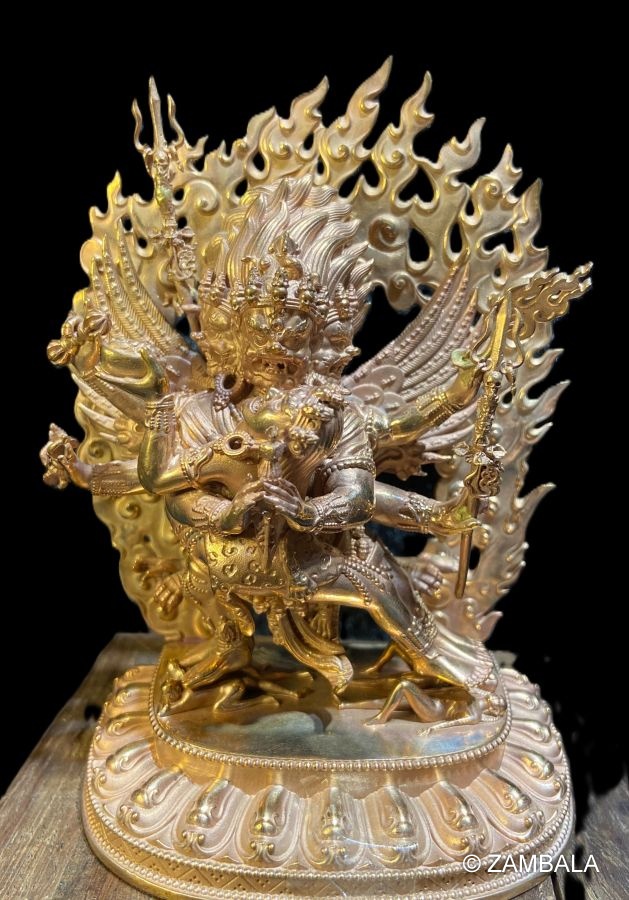 - **金剛杵(Vajra Sceptre)**:上方左手持九叉杵(忿怒相)和小杵(平和相),源自印度吠陀傳統的金剛杵,象徵閃電與不可摧毀的智慧。由來與因陀羅(Indra)的武器相關,在佛教中轉化為覺悟工具,用於摧毀無明。