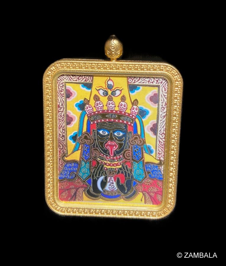 扎基拉姆為黑臉、吐舌,頭戴骷髏冠、長出一雙雞足的恐怖形象,類似於印度教的時母。
