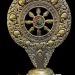 法輪的設計充滿象徵性,通常描繪為戰車輪子樣式,顏色多為金黃色。它的基本結構包括輪轂(hub)、輪緣(rim)和輪輻(spokes):