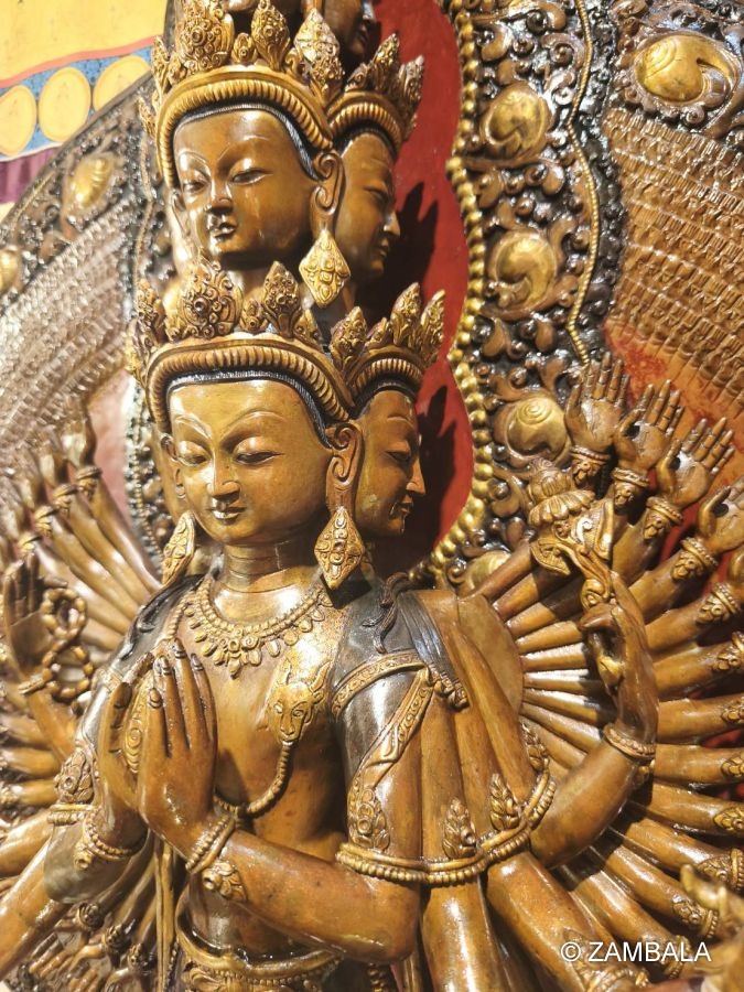 在更廣的佛教脈絡中,千手觀音也受密教影響,特別在藏傳佛教中,類似形象被稱為千臂觀音(Chenrezig),強調菩薩的多臂多眼代表無限的慈悲和智慧,能同時應對多重苦難。 其起源反映了佛教從印度向東亞傳播的演變過程,融合了不同文化元素。