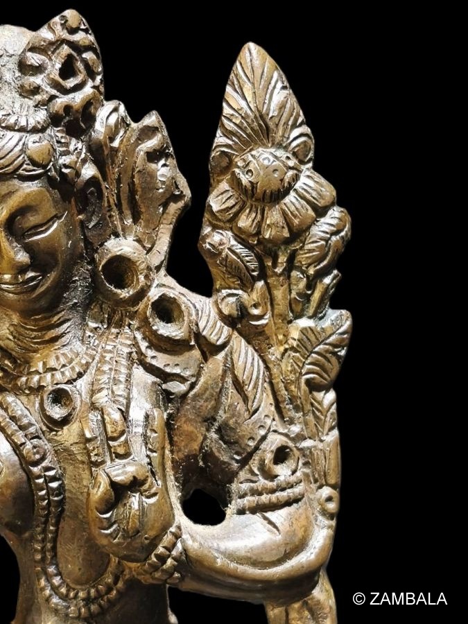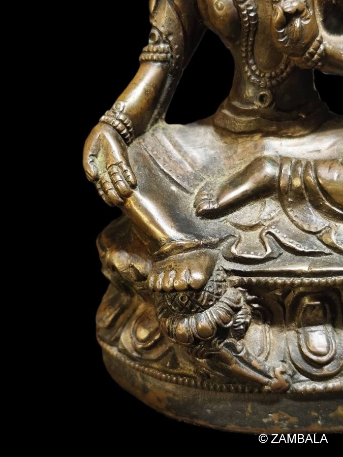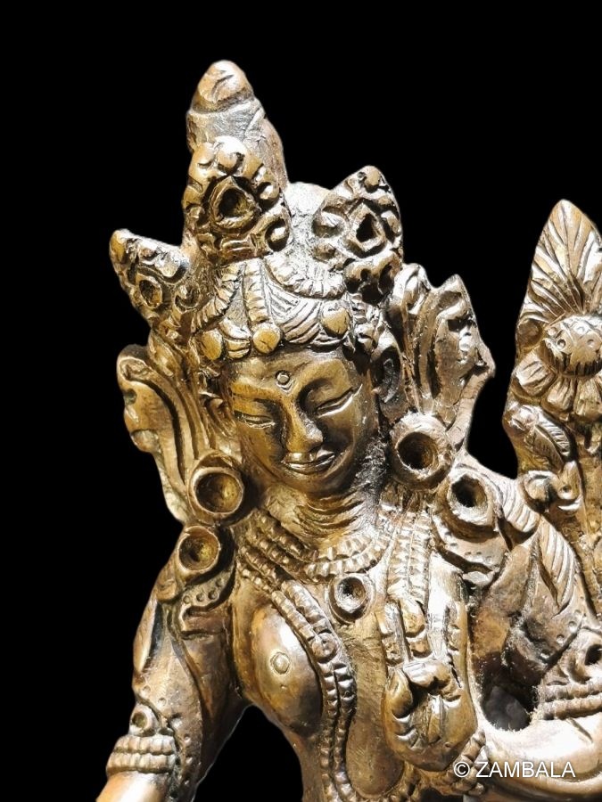 綠度母(Green Tara,藏語為Jetsun Drolma)是藏傳佛教(Vajrayana)中最受尊崇的女性菩薩之一,她被視為慈悲的化身,專門提供迅速的保護和救助。 在藏傳佛教中,她扮演「迅速護佑者」(Swift Protectress)和「解放之母」(Mother of Liberation)的角色,象徵積極的慈悲行動和智慧。她是觀世音菩薩(Avalokiteshvara)的女性面向,經常被描述為一位行動英雄,能夠即時回應眾生的呼求,從世間危險(如災難、疾病)和精神障礙(如恐懼、業障)中拯救信眾。 綠度母不僅是菩薩,還被視為已證得佛果的覺者,她是所有佛的母親,體現了般若波羅蜜(Prajnaparamita,智慧母)的本質。在藏傳佛教的四大教派(寧瑪、薩迦、噶舉、格魯)中,她都是重要的冥想本尊(yidam),信眾透過修持她的法門來培養菩提心(bodhicitta)和慈悲。她的綠色象徵活力、恐懼的克服,以及所有顏色(活動)的統合,代表她能多方面地從事平伏(pacifying)、增長(increasing)、攝受(enthralling)和忿怒(wrathful)等佛行事業。 她從二十一尊度母中脫穎而出,成為最主要的形態,廣泛融入日常儀軌、護身符和祈福活動中。