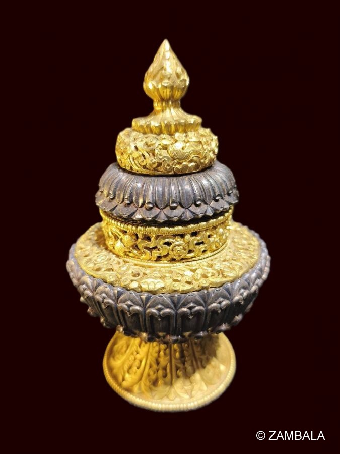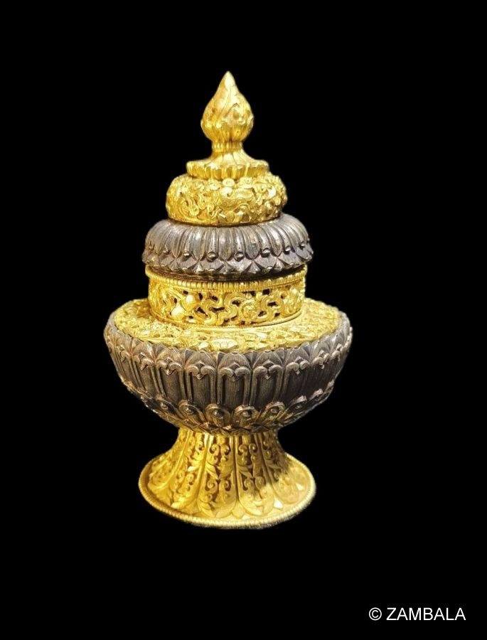 修法米罐在藏傳佛教中是一種重要的法器,主要用於施食法門,特別是布施給餓鬼眾生。這種儀式源自佛教經典,旨在透過咒語加持食物,使其轉化為甘露,供養無形眾生,幫助他們減輕飢渴之苦。