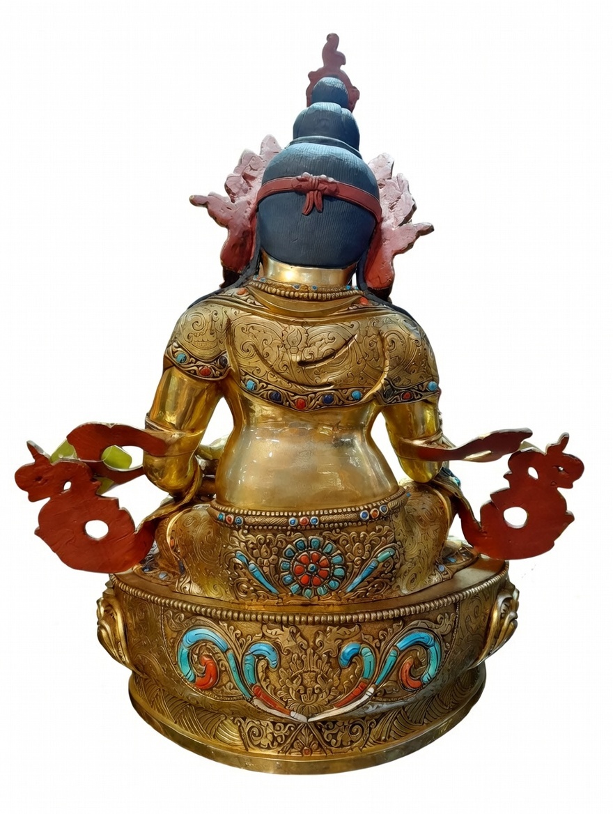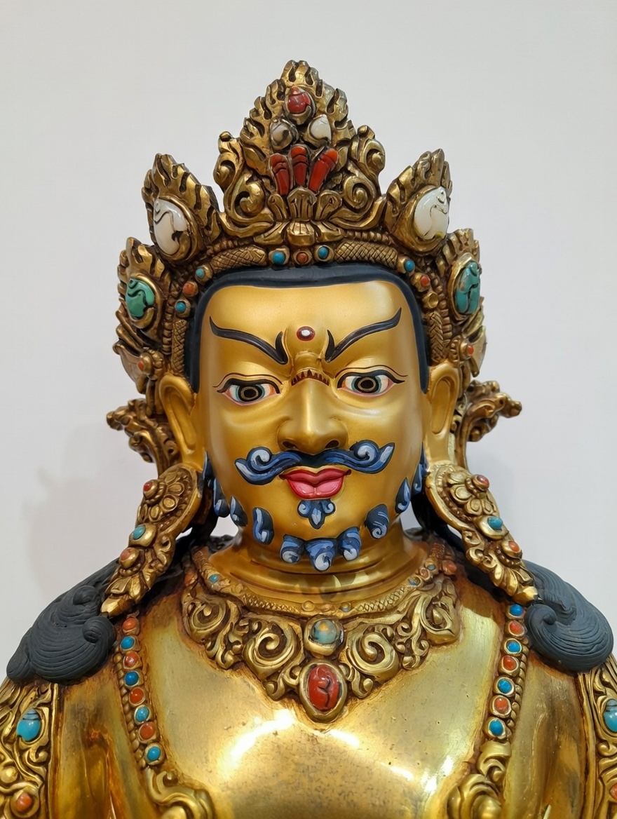 黃財神(銅全鎏金, 鑲寶石) 佛像, 產地: 尼泊爾手工